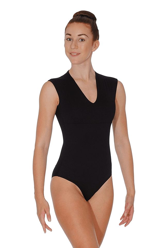 The Angeles ladies' cap sleeve leotard from Ballet Rosa. This superb Microfibre short sleeve leotard moulds to the dancer's body to create a spectacular silhouette. With a seamless V-neck and keyhole back which lends the leotard drama, the Angeles is a brilliant leotard for both dance classes and performances.