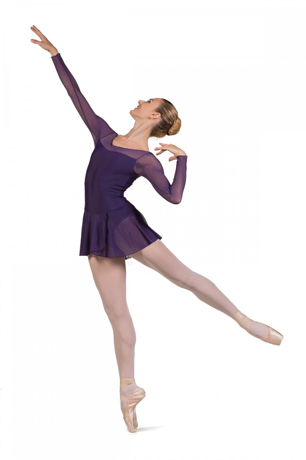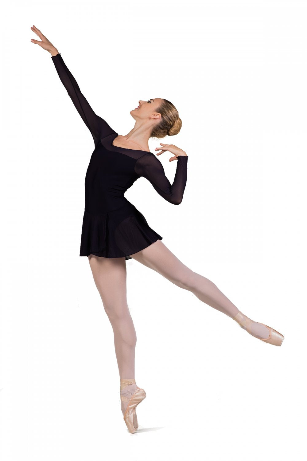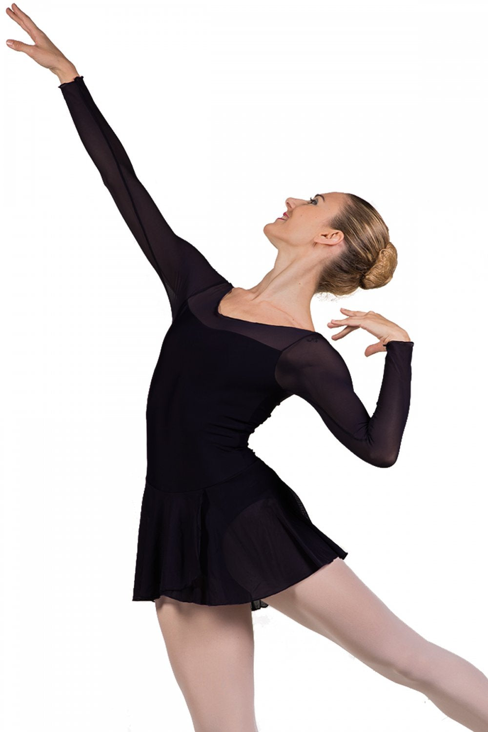 The Francesca long sleeve ladies' leotard from Ballet Rosa. This classic ladies' leotard with elegant tulle overlay is ideal for dance classes. The four way stretch tulle sleeves and attached skirt are comfortable, flexible, and stylish. With an elegant boat neck line and full front lining, the Francesca is a guaranteed favourite.