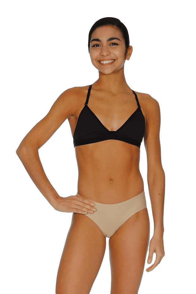 Be supportive in Capezio's 3777T Girls Deep Neck, Clear Back Bra. This handy bra is perfect for wearing under any leotard during competition time or dance class. The convenient transitional clear bra straps allow you to wear this bra in various ways. The plunging neckline means your can be supported under any leotard!