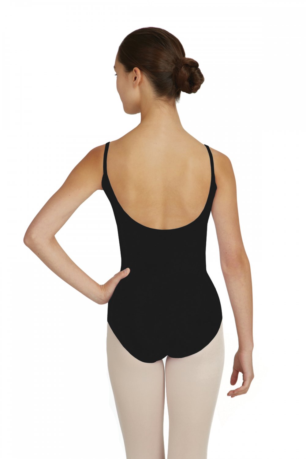 The gorgeous CC101 ladies' princess camisole leotard from Capezio. This simple yet stunning leotard with princess seams complements the figure and provides the dancer with comfort and support. Featuring a moderate V-shaped neckline, camisole thin straps, and a built-in bra lining, the CC101 is one of our best sellers.