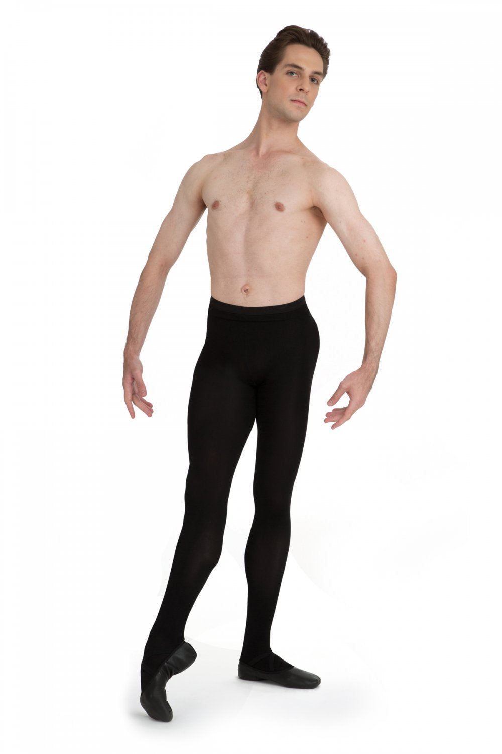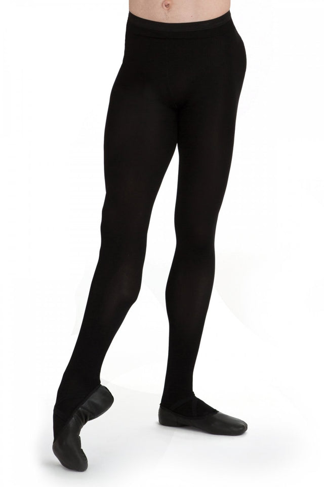 Capezio MT11 Men's Footed Tights. Classically designed, the MT11 is made from dense Nylon/Spandex and has an elongating back seam and a plush ¾" elastic waistband, giving the dancer flexibility and support. Available in Black or White, Capezio's footed dance tights are suitable for all levels of rehearsal and performance.