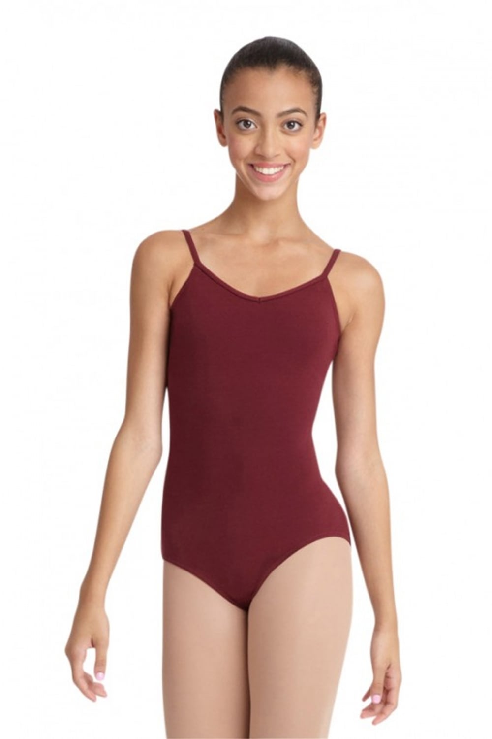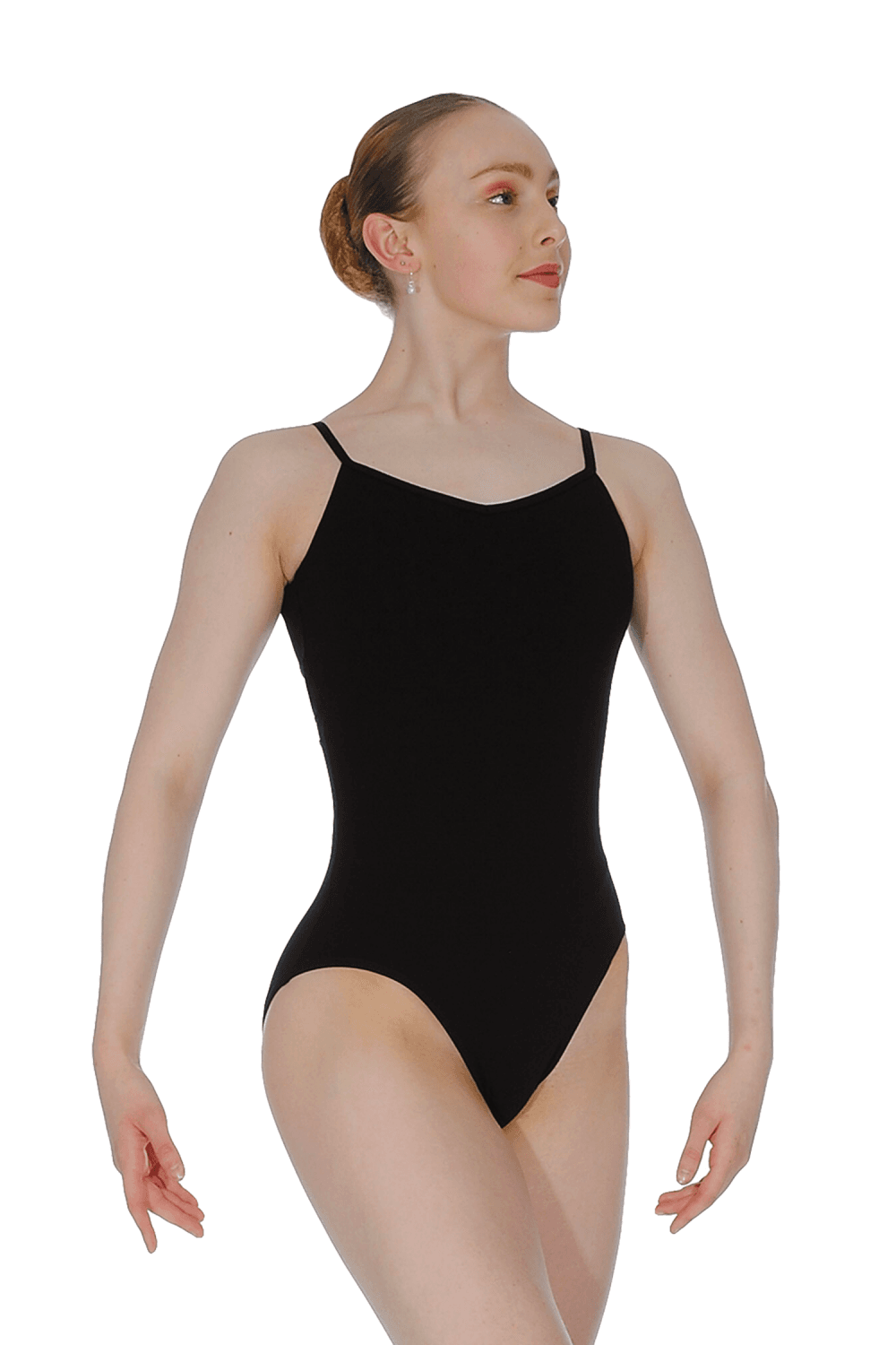 The CC102 ladies' V-neck camisole leotard from Capezio. A beautifully classic design, the CC102 offers a supportive shelf bra lining and a ballet cut leg line to elongate and emphasise movement. A highly practical garment, this ladies' dance leotard is made from a machine-washable blend of 90% Cotton/10% Lycra Spandex.