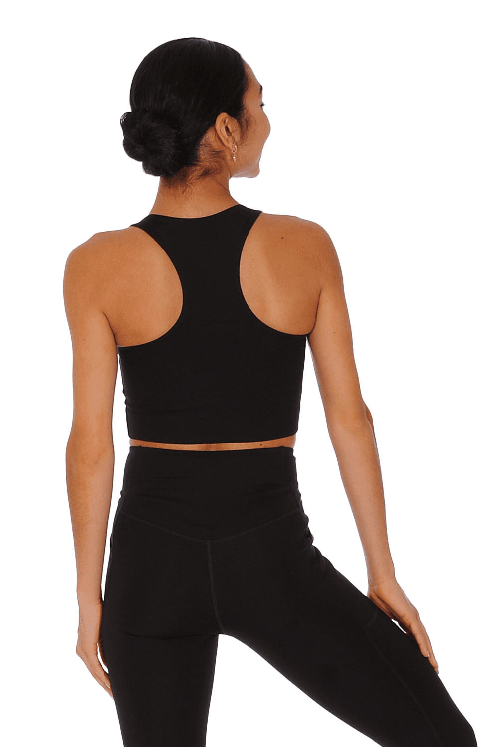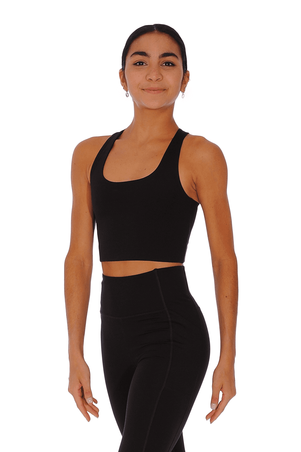 A classic design crop top /sports bra with racer back. Fully lined, with a compressive fit offering medium support. Available in Black, Moss or Plum.