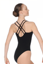 This dance leotard (3853) from Intermezzo comes in girls' and women's sizes, and is made using 89% Polyamide Supplex and 11% Lycra. The double strap cross over style makes this piece eye-catching. An ideal student/college leotard in black.