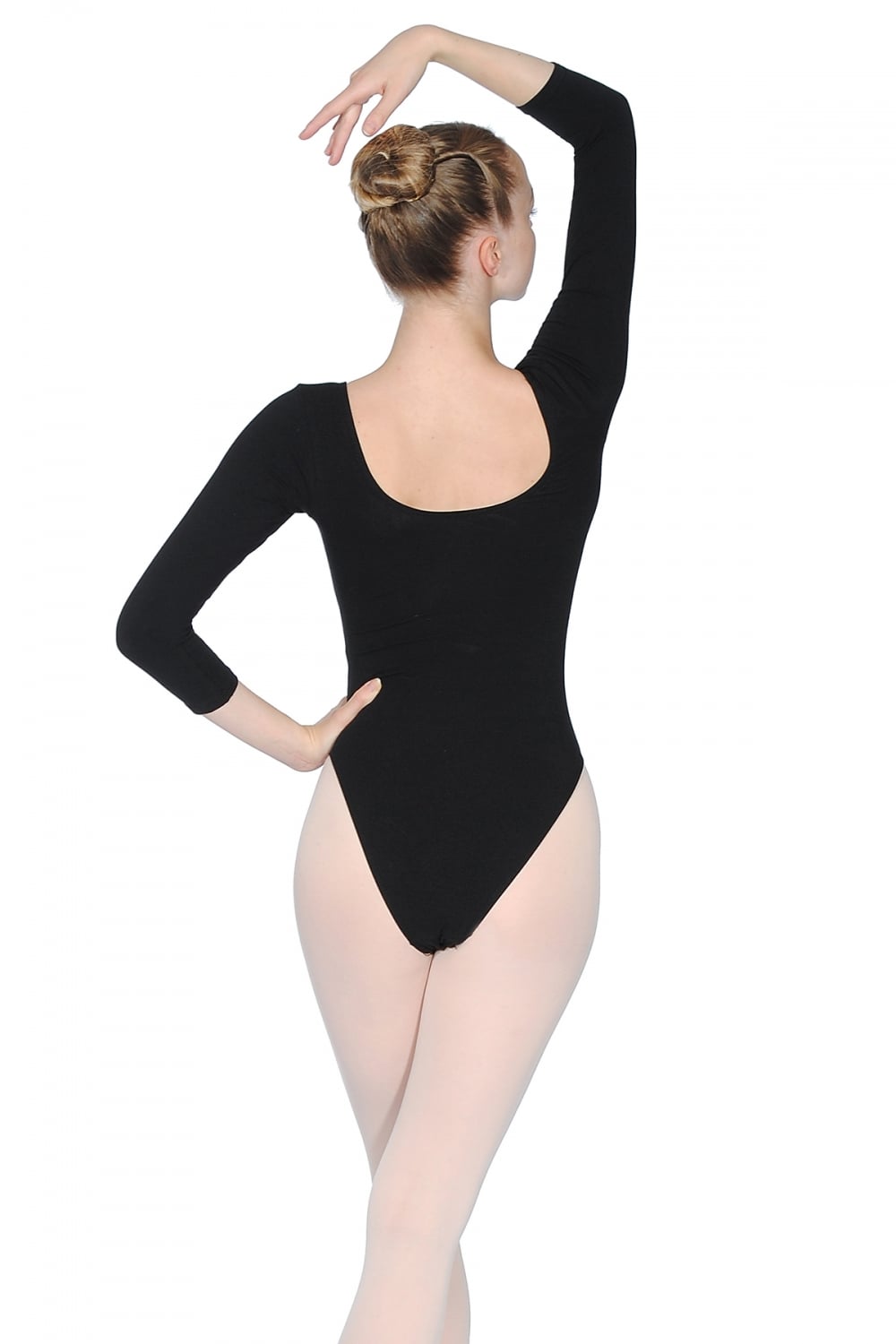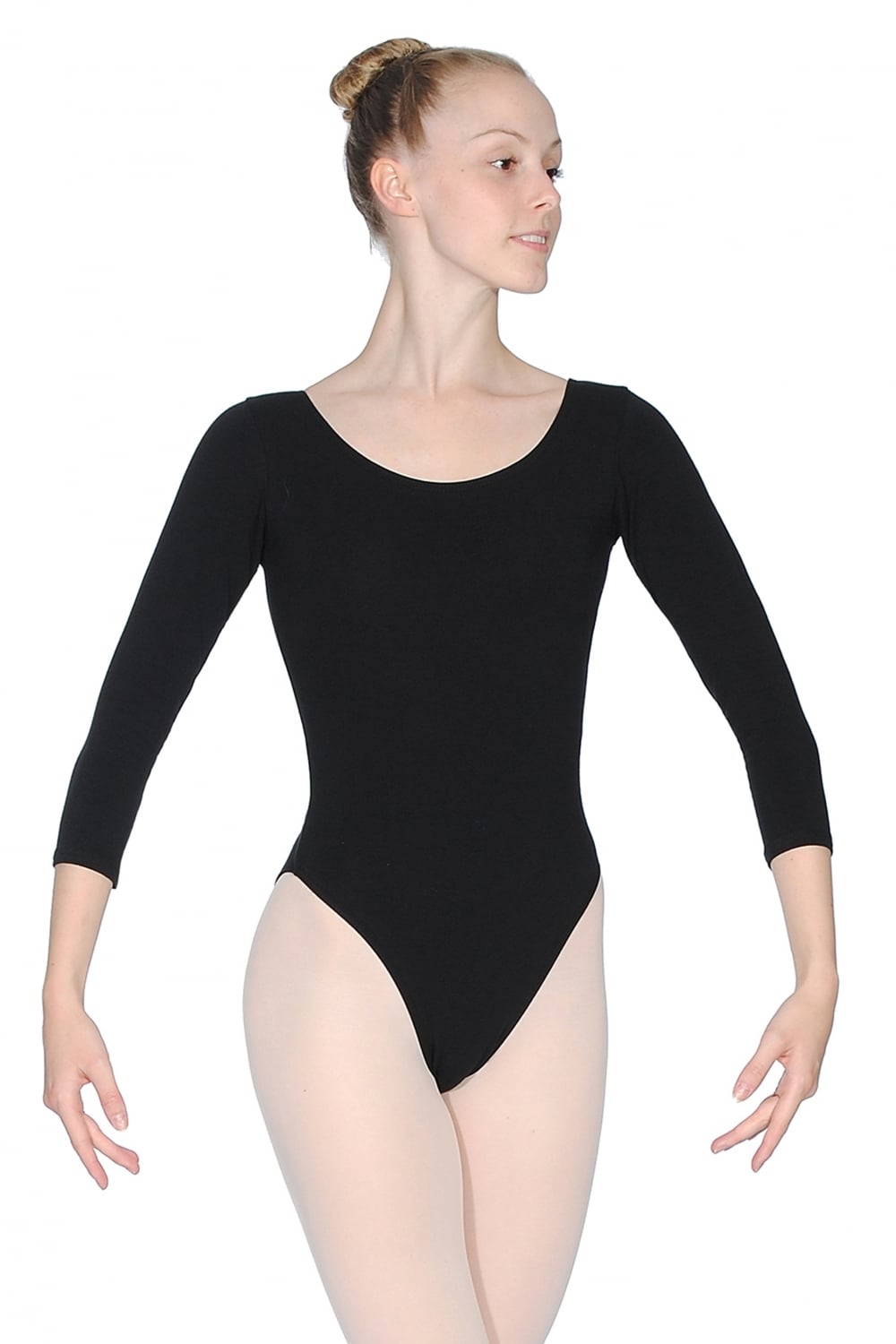 Roch Valley Cotton 3/4 Length Sleeve Leotard - Black / Age 11-13 is backordered and will ship as soon as it is back in stock.
