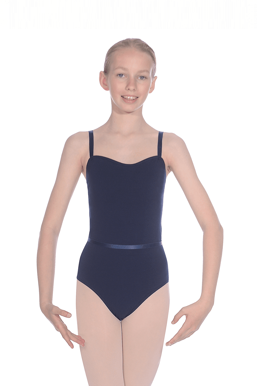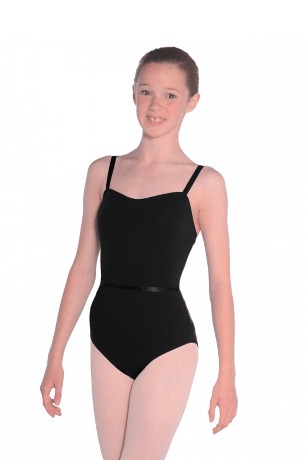 The CMAJ leotard from Roch Valley. Featuring a strappy camisole top and a sleek matching belt, this classic ballet design is suitable for Major examinations and NAD examinations from grade 5 in black. Made from soft Cotton/Lycra, CMAJ brings a simple yet sophisticated look in a comfortable fabric that allows for freedom of movement.