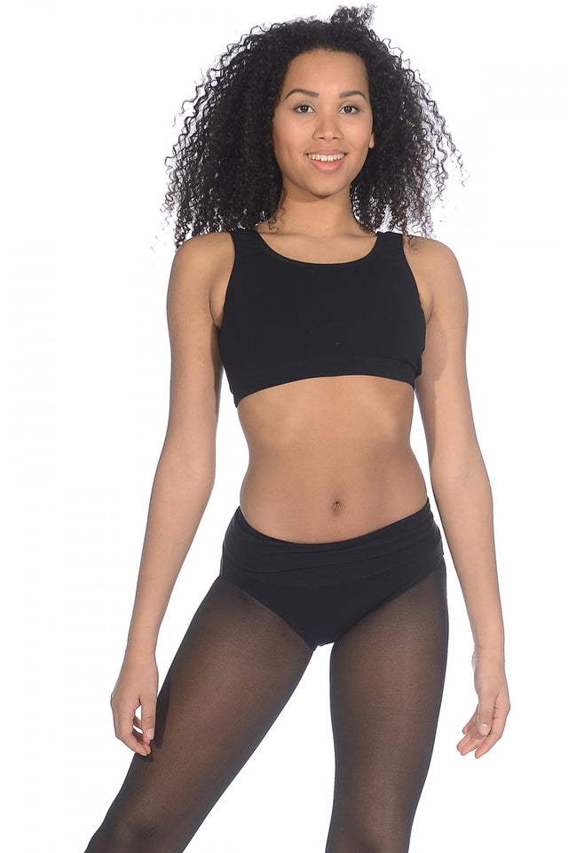 CTCROP crop top from Roch Valley. The perfect garment for keeping your cool during high-energy practices, the CTCROP features a round neck and a comfortable full front lining which provides support and modesty for the wearer. Available for both children and adults, this Roch Valley dance crop top is created from stretchy Cotton/Lycra which is easy to wash and quick to dry. Pictured with CTNIX.Fabric: Cotton/Lycra