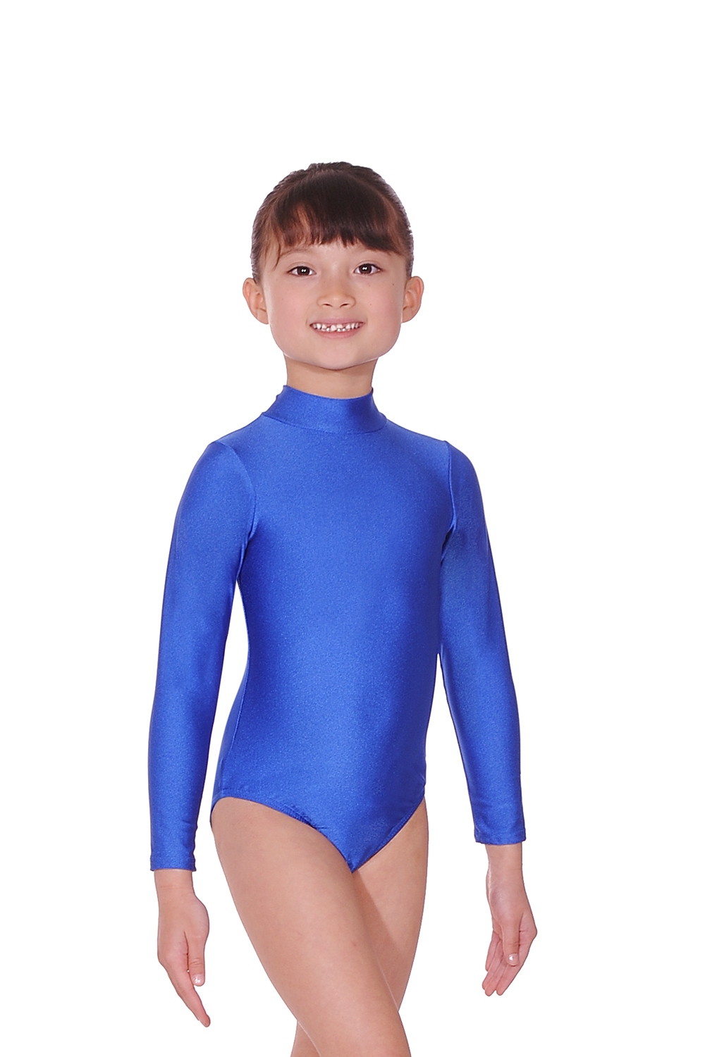 The 2008 leotard from Roch Valley. This sleek Nylon/Lycra leotard features a stylish turtle neck and modest long sleeves, with a stunning keyhole back and an easy press stud fastening. The range of sizes caters for dancers of all ages and abilities, no matter what your style of dance.