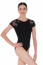The RVMacie from Roch Valley's new Microfibre Collection - The Macie leotard is a stylish, elegant design featuring a cap sleeve of lace mesh fabric and a V shaped back that gathers softly at the centre. The front is fully lined for additional comfort and support.