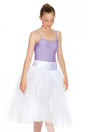 Roch Valley PTROM romantic style tutu skirt. This knee length net and Nylon/Lycra tutu skirt is easy to wear and brilliant quality. A gorgeous dance skirt, it can be mixed and matched with our collection of ladies' leotards to make a fabulous outfit for ballet and contemporary performances.