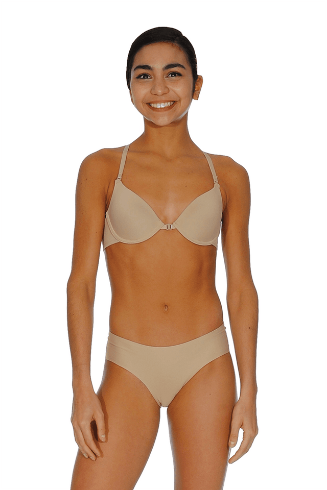 Capezio's 3765W Underwire Minimal Show Bra is perfect for wearing under any dance costume. This underwired minimal show demi bra includes a front clap, with clear adjustable back straps for extra discreetness that can be moved into three different positions to match any leotard you wear!