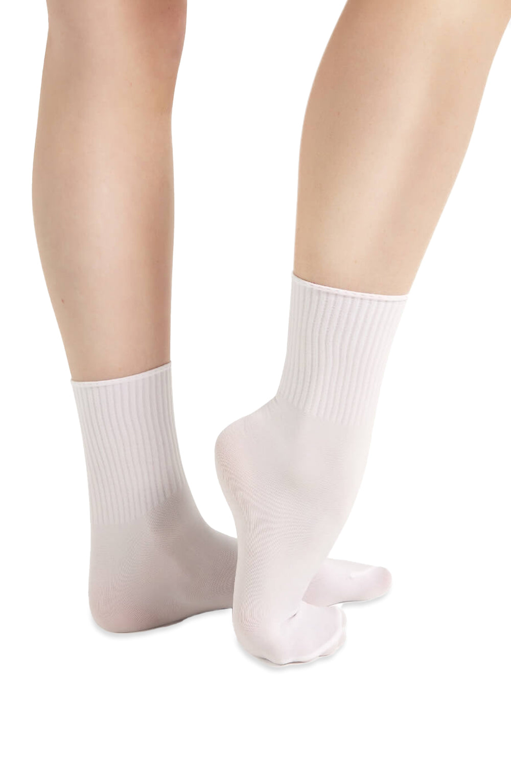 The Capezio crew length ballet socks are made with a soft nylon and spandex mix and feature ribbed fabric above the ankle, ensuring no movement whilst dancing and moving at any level of intensity. Available in both children's and adult size and 4 shade options.