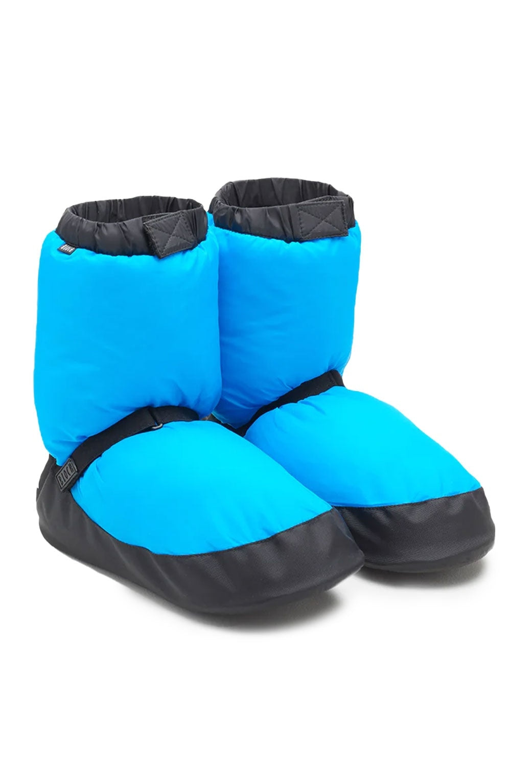 The IM009 adults or children's warm-up booties from Bloch. These unisex booties feature a soft, cushioned heel for luxurious comfort, and have Nylon mudguards. Designed by the American Ballet Theatre's principal dancers Irina Dvorovenk and Max Beloserkovsky, they are made with Polyester to ensure they retain as much heat as possible.