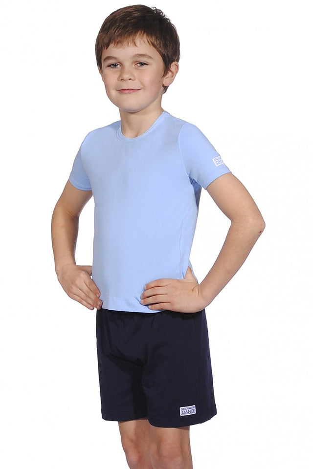 Freed of London RAD boys' short sleeve T-shirt PBTE. This boys' short sleeved T-shirt is a Royal Academy of Dance approved regulation garment. It is suitable for RAD boys' Pre-Primary and Primary Grades. Made from Polycotton/Lycra, the PBTE features the official RAD logo on the sleeve.