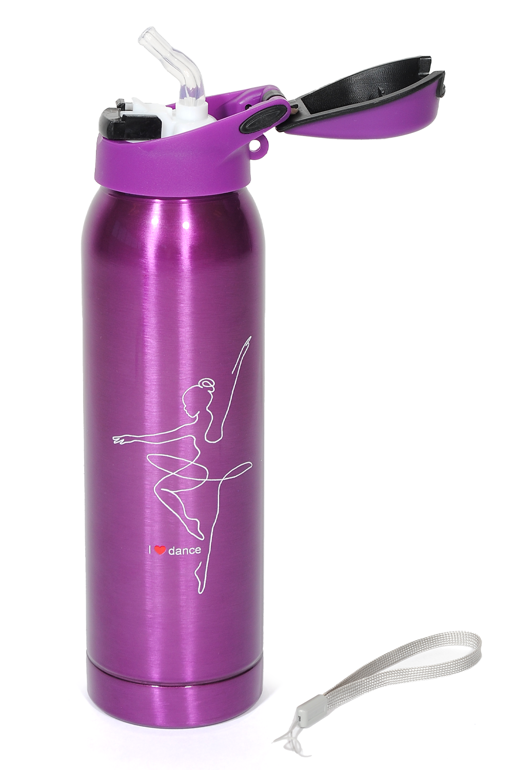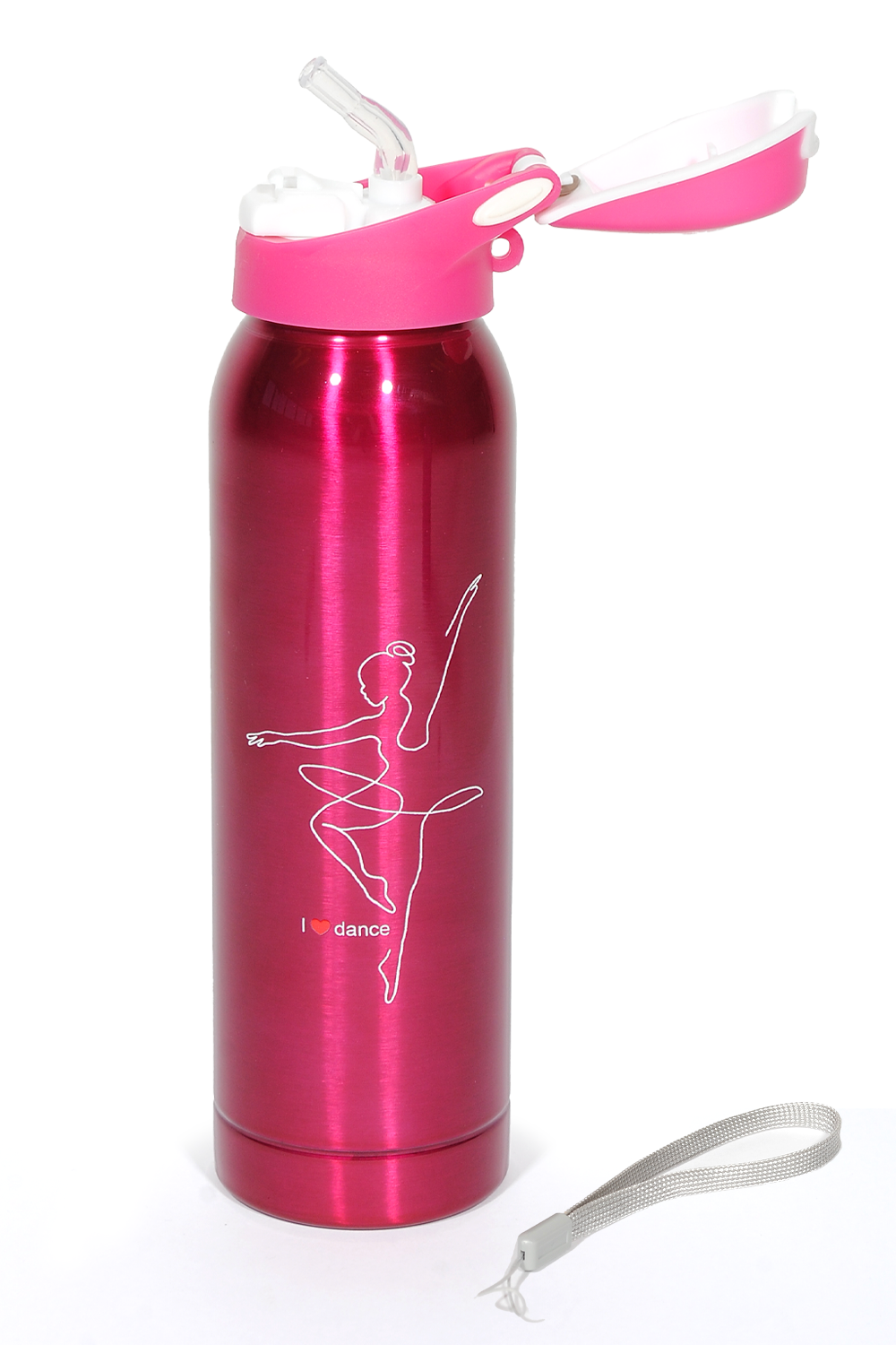 - Stainless steel thermal bottle with “I Love Dance” design