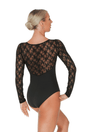 This girls' and women's dance leotard (31287) from Intermezzo is feminine and elegant. The extreme open back is covered by a super stretchy lace pattern, as are the long sleeves. It features a sweetheart neckline which draws this outfit together to make an eye-catching leotard.