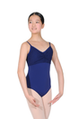 The Callie camisole leotard is the official Royal Academy of Dance Vocational Grades uniform, combines elegance with comfort. Featuring mesh overlay panels and knot ruches on both the front and back, this leotard is made from eco-friendly Life Power Recycled ECONYL fabric. Available in Navy, Burgundy, and Black, it offers a sleek and supportive fit for higher-level dancers.