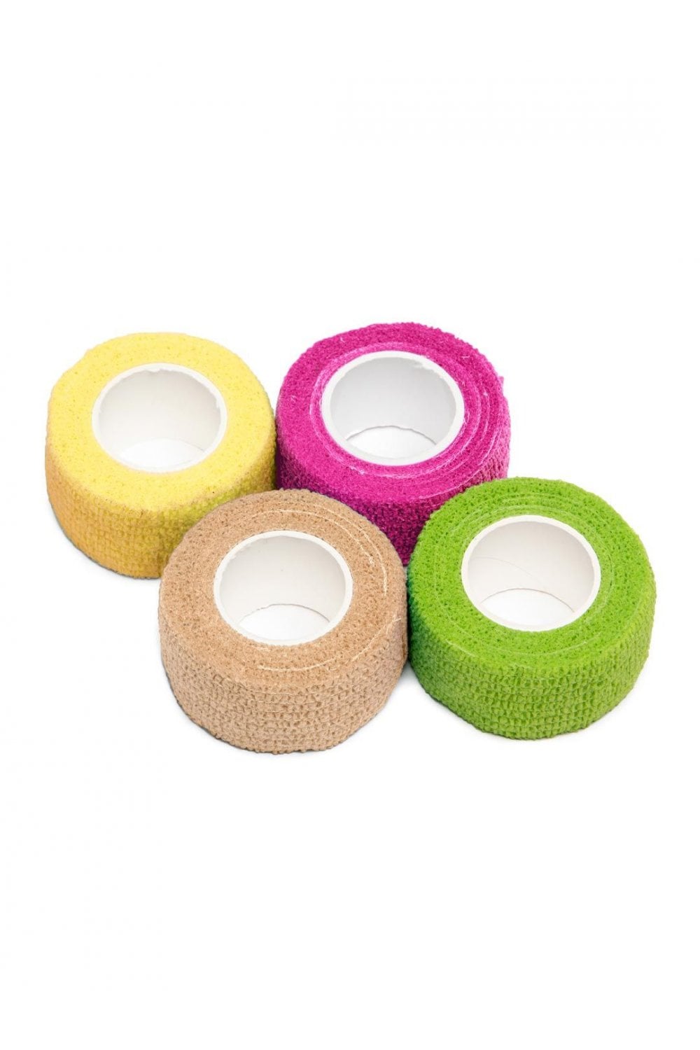 The I-BH1526 foot tape from Bunheads and Capezio. Use the tape to wrap around or tape together toes to help prevent soreness. Made with latex-free glue. Available in a pack of 4 of yellow, pink, green and nude.