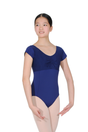 Designed for Royal Academy of Dance vocational grades, this capped sleeve leotard features a delicate mesh overlay panel, knot ruche, and princess seams for a sleek, elegant silhouette. Crafted from sustainable, high-quality ECONYL fabric, it offers both style and comfort for dedicated dancers. Available in Navy, Burgundy, and Black, and proudly handmade in England.