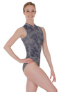 The beautifully handcrafted Aura leotard from Spanish brand Mara. Using a comfortable and breathable ribbed fabric in a shades of grey tie-dye style print, this leotard will show off a dancers silhouette perfectly. The open back, High neck with zip front allow the dancer to wear this in a casual setting or for performance. Simply Stunning!