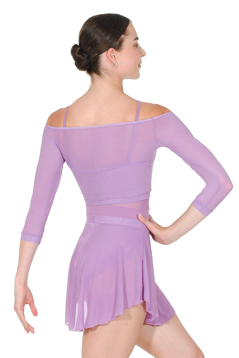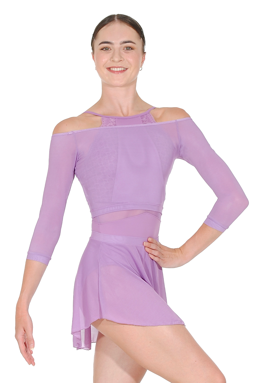 The Maayan elasticated mesh top by So Danca is a stylish way to add another layer to your dance look. The wide boatneck and 7/8 sleeves combined with cropped length create an elegant line.