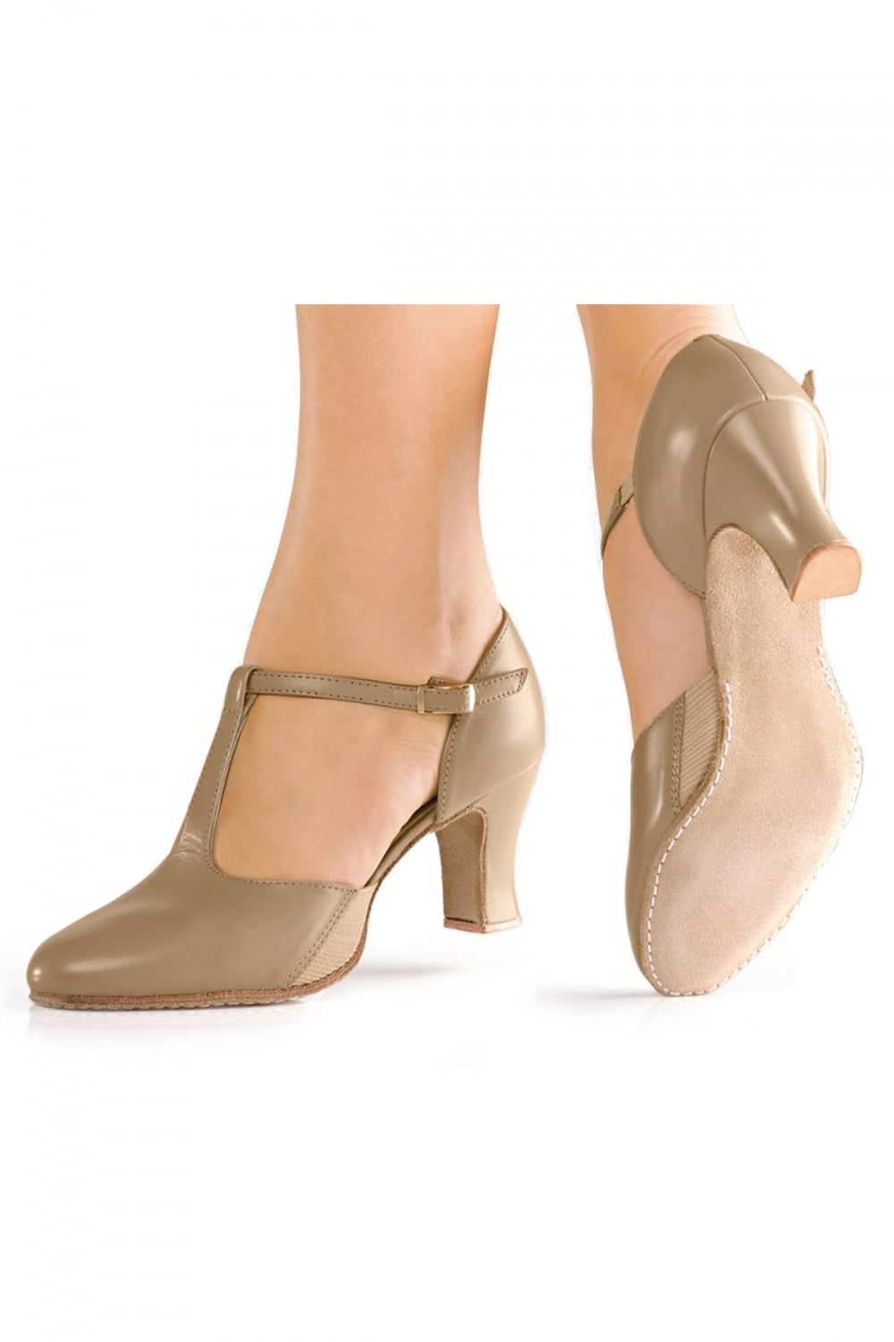 The CH57 classic ladies' character shoes from So Danca. With a T-bar strap to secure the foot and elastic gussets around a cushioned lining, these character shoes deliver supreme comfort and a secure fit. Featuring high quality leather uppers and a 2.5 inch heel over non-slip suede soles, these timeless character shoes make the perfect choice for performances and auditions.