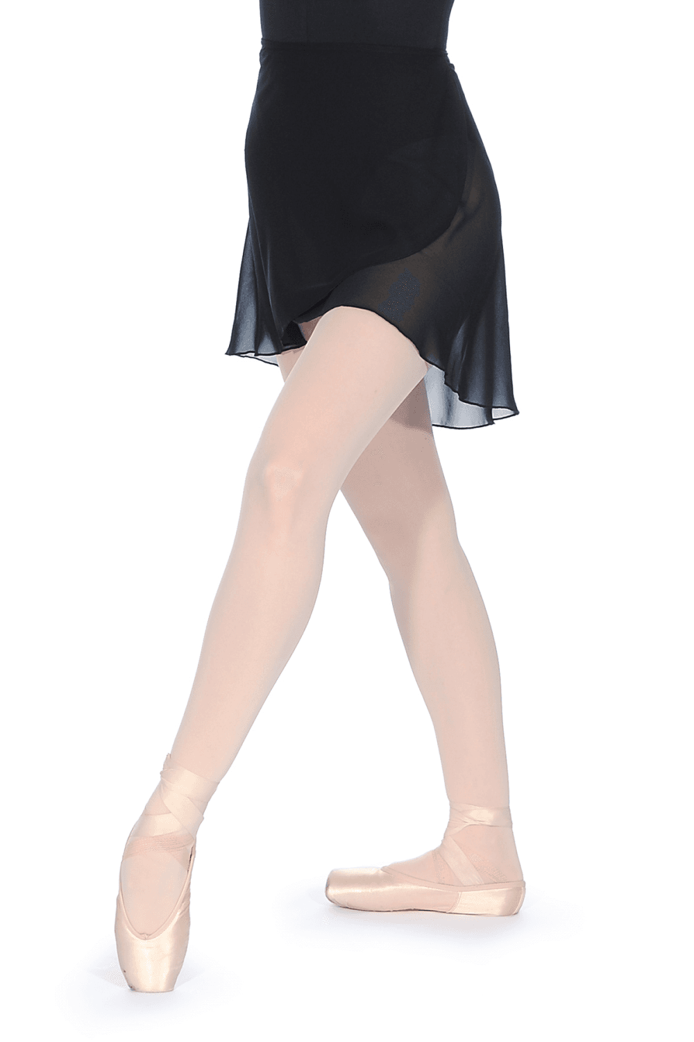 The R3050 chiffon wrap skirt from Rumpf. Made from lightweight 100% Polyester and featuring an adjustable fastening, the R3050 makes an elegant addition to a variety of outfits. The perfect choice for your dance wardrobe, Rumpf's beautiful wrap skirt is available in striking black.